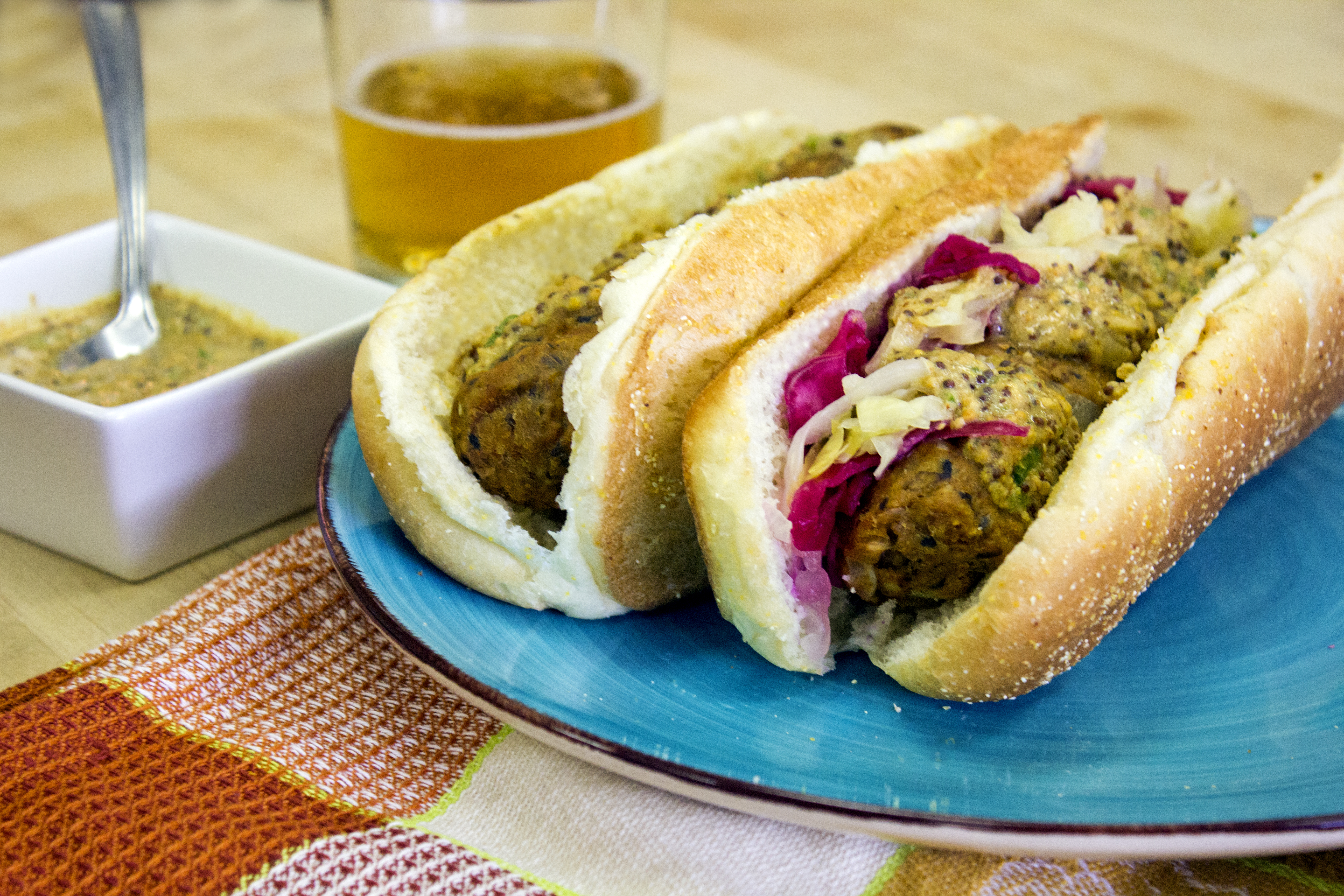 Vegan Sausage with Spicy Drunken Mustard