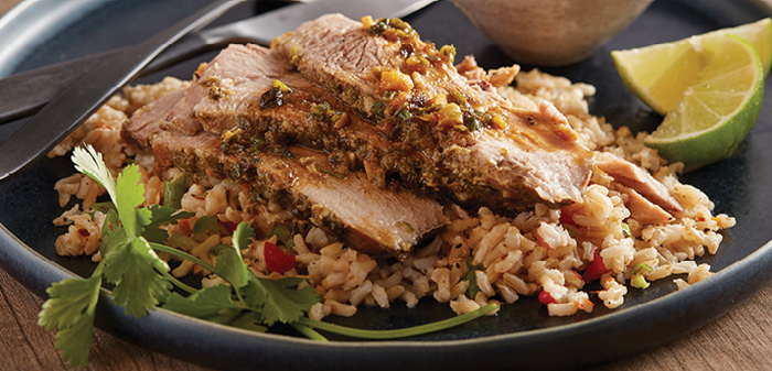 Your slow cooker is your friend and will turn an affordable cut of pork into a moist, tender, flavorful meal. In this dish, a quick spice and chili rub flavors the pork and its juices, which you quickly reduce on the stovetop and mix with bright, fresh herbs to serve. Oranges and limes combine with jalapenos and cilantro for a Mexican-inspired flavor profile, perfect for pairing with rice.